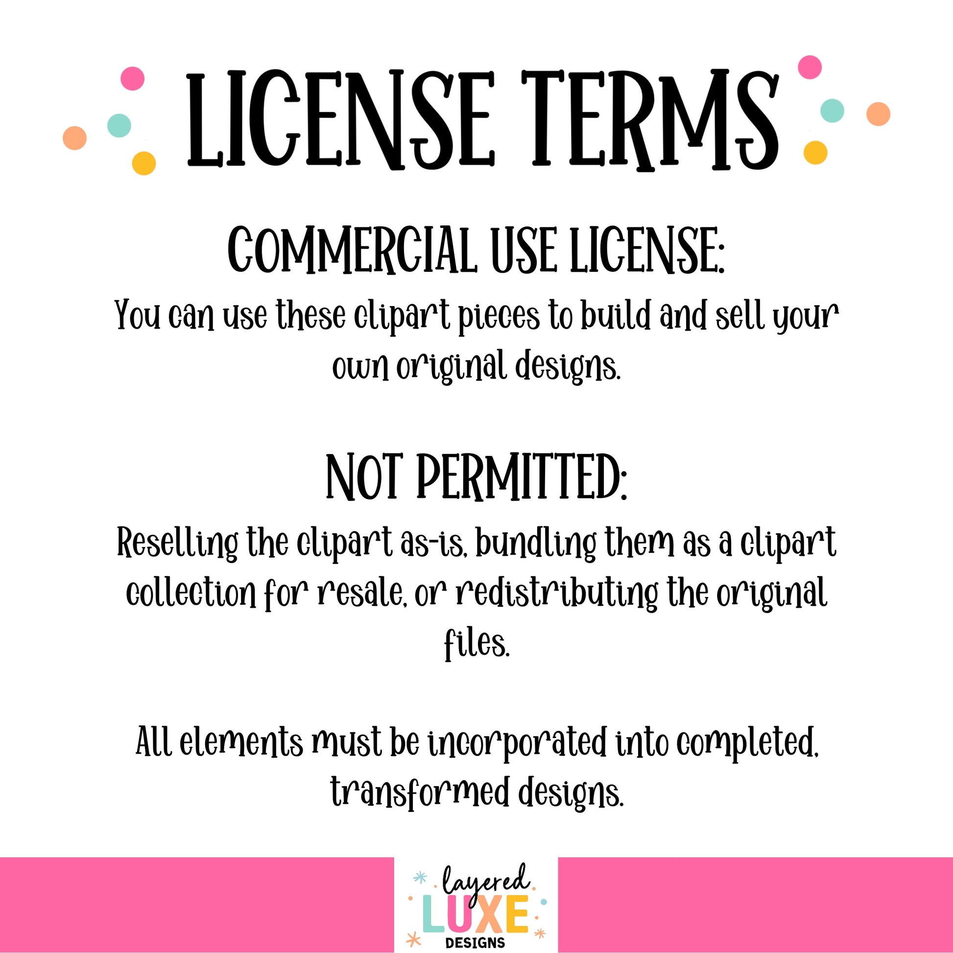 I appreciate your support and want to provide you with the necessary guidelines for commercial use of our designs. Please carefully read and abide by the following policy: